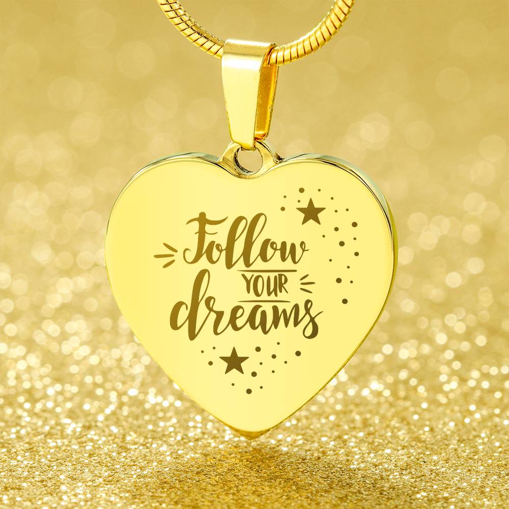 Follow Your Dream Heart Necklace Engraved Message